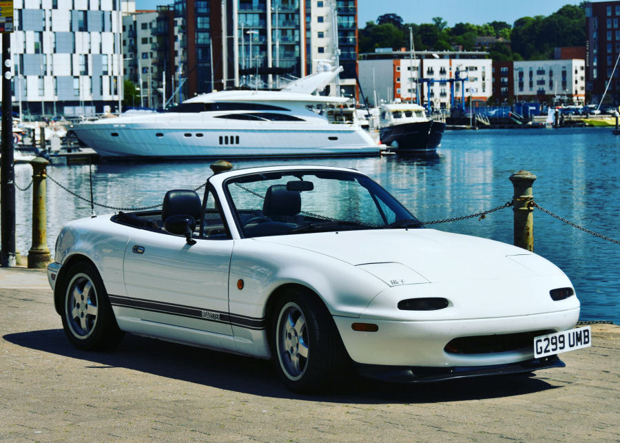 These web pages are about 'Yoko', my 1990 Eunos Roadster 1.6. She is an early Mk I car and was imported into the UK from Japan in 2002. In the UK these cars are sold as the Mazda MX-5 and in the USA as the Mazda Miata. The chassis plate lists the model as E-NA6CE and she has done over 125,000 miles. We bought her in July 2016 for £1100.